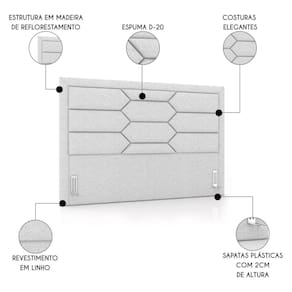A costura com desenhos únicos, cria um visual charmoso e contemporâneo. Além disso, a estrutura dessa cabeceira estofada proporciona conforto e suporte na medida certa para suas noites de sono. Em outras palavras, essa cabeceira casal oferece durabilidade e resistência, graças aos materiais de alta qualidade da sua composição. Ah, para deixar o seu ambiente ainda mais belo e funcional, basta combinar essa cabeceira com mesas laterais, e você terá um quarto de casal completo, como sempre quis.