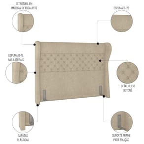 A Cabeceira de Casal Trinidad possui um design provençal com laterais estofadas que auxiliam na fixação do colchão na Cabeceira e botões de capitonê no centro conferindo estilo e personalidade ao seu ambiente. Ah! Além disso, ela conta com estrutura em madeira de eucalipto de qualidade para garantir um produto resistente, duradouro e forro em kami TNT que ajuda a prolongar a vida útil do produto. Revestida por espuma e tecido bouclé que possui vários benefícios, além de um lindo efeito visual, é agradável ao toque para sua hora de descanso, inclusive a cabeceira é propícia para Cama Box Casal de 158cm.