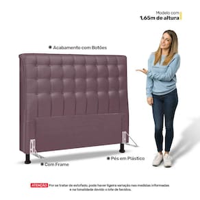 Com a Cabeceira Estofada Ciara, você não recebe apenas um produto de alta qualidade, mas também um pacote completo. Ela acompanha um resistente frame para fixação no box e pés de plástico (A cor dos pés pode variar de acordo com o lote), garantindo estabilidade e segurança.