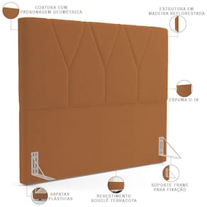 Poder desfrutar de momentos de paz e tranquilidade em nosso lar é imprescindível para mantermos um equilíbrio mental e físico e conseguirmos de fato descansar e nos desconectar um pouco da rotina caótica que vivemos hoje. Pensando nisso, a decoração é ponto chave na transformação do ambiente e a Cabeceira Cama Box Casal Queen 160 cm Aurora W01 Bouclê Terracota - Lyam Decor vem para proporcionar ainda mais sensações de conforto ao seu quarto.