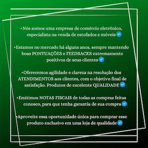 - Para futuras compras, não garantimos a mesma tonalidade de cor, pois existe variação a cada lote do fabricante do tecido.