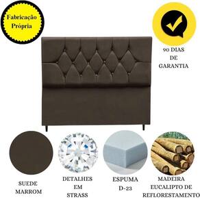 Cabeceira Casal Geovana Suede 140 cm - Detalhes de Capitonê com Strass