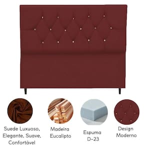 Fabricada com materiais de alta qualidade, como madeira eucalipto e revestimento em Suede, esta cabeceira é durável e resistente, garantindo não apenas estilo, mas também funcionalidade para o seu ambiente.