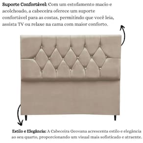 A Cabeceira Cama Box Estofada Solteiro Geovana Suede Bege é o toque de elegância que faltava em seu quarto. Com uma imponente altura de 122 cm, ela adiciona sofisticação e charme ao ambiente. Seus 90 cm de largura são perfeitos para camas de solteiro, oferecendo uma cobertura completa e harmoniosa.