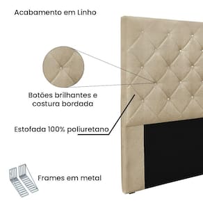 Dormir bem e manter-se seguro na hora de relaxar são fatores importantes que influenciam na qualidade do sono. Unir esses pontos com uma decoração incrível seria perfeito, não é mesmo? Que tal começar essa mudança pela cabeceira da sua cama!? A Cabeceira Tania sem dúvida vai roubar a cena de tão linda e aconchegante! A estrutura é feita em madeira de eucalipto, uma opção que ressalta a durabilidade e beleza da peça. A cabeceira é preenchida com espuma D23, garantindo um conforto ideal para noites mais tranquilas. Este modelo é indicado para Cama Box King de 195 cm, contém costura bordada em losangos com botões brilhantes que conferem uma textura maleável e um visual refinado. O revestimento foi feito no Linho, um tecido de alta qualidade no tom Dourado perfeita para criar uma atmosfera mais aconchegante ao local. As sapata são de plástico além de serem muito resistentes garantem maior flexibilidade e sustentação à peça. E não menos importante acompanha frame em metal que é o suporte ideal para fixar a cabeceira na cama box. O design desta peça apresenta um elemento estético sofisticado, que transformará instantaneamente o ambiente e impedirá que a passagem de temperaturas (frio/quente) que se concentram na parede, passem diretamente para o usuário. A Cabeceira Tania é a opção mais adequada para o seu dormitório, afinal de contas você merece o que há de melhor para completar a decoração da sua casa. Adquira a Cabeceira Tania antes que acabe o estoque!
