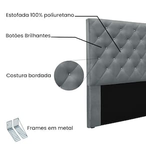 Dormir bem e manter-se seguro na hora de relaxar são fatores importantes que influenciam na qualidade do sono. Unir esses pontos com uma decoração incrível seria perfeito, não é mesmo? Que tal começar essa mudança pela cabeceira da sua cama!? A Cabeceira Tania sem dúvida vai roubar a cena de tão linda e aconchegante! A estrutura é feita em madeira de eucalipto, uma opção que ressalta a durabilidade e beleza da peça. A cabeceira é preenchida com espuma D23, garantindo um conforto ideal para noites mais tranquilas. Este modelo é indicado para Cama Box King de 195 cm, contém costura bordada em losangos com botões brilhantes que conferem uma textura maleável e um visual refinado. O revestimento foi feito no Veludo, um tecido de alta qualidade no tom Cinza perfeita para criar uma atmosfera mais aconchegante ao local. As sapata são de plástico além de serem muito resistentes garantem maior flexibilidade e sustentação à peça. E não menos importante acompanha frame em metal que é o suporte ideal para fixar a cabeceira na cama box. O design desta peça apresenta um elemento estético sofisticado, que transformará instantaneamente o ambiente e impedirá que a passagem de temperaturas (frio/quente) que se concentram na parede, passem diretamente para o usuário. A Cabeceira Tania é a opção mais adequada para o seu dormitório, afinal de contas você merece o que há de melhor para completar a decoração da sua casa. Adquira a Cabeceira Tania antes que acabe o estoque!