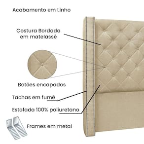 Dormir bem e manter-se seguro na hora de relaxar são fatores importantes que influenciam na qualidade do sono. Unir esses pontos com uma decoração incrível seria perfeito, não é mesmo? Que tal começar essa mudança pela cabeceira da sua cama!? A Cabeceira Vicenza sem dúvida vai roubar a cena de tão linda e aconchegante! Contém estrutura feita em madeira de eucalipto, uma opção que ressalta a durabilidade e beleza da peça. A cabeceira é preenchida com espuma D23, garantindo um conforto ideal para noites mais tranquilas. Este modelo é indicado para Cama Box King de 195 cm, possui costura em losangos bordada em matelassê, tachas em fumê e botões encapados que conferem uma textura maleável e um visual refinado. O revestimento foi feito no Linho, um tecido de alta qualidade no tom Dourado perfeita para criar uma atmosfera mais aconchegante ao local. As sapata são de plástico além de serem muito resistentes garantem maior flexibilidade e sustentação à peça. E não menos importante acompanha frame em metal que é o suporte ideal para fixar a cabeceira na cama box. O design desta peça apresenta um elemento estético sofisticado, que transformará instantaneamente o ambiente e impedirá que a passagem de temperaturas (frio/quente) que se concentram na parede, passem diretamente para o usuário. A Cabeceira Vicenza é a opção mais adequada para o seu dormitório, afinal de contas você merece o que há de melhor para completar a decoração da sua casa. Adquira a Cabeceira Vicenza antes que acabe o estoque!