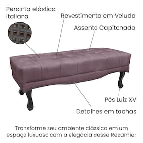 Dormir bem e manter-se seguro na hora de relaxar são fatores importantes que influenciam na qualidade do sono. Juntos, a Cabeceira Vicenza e o Puff Recamier Vicenza criam uma sinergia única, onde o requinte encontra a funcionalidade! Este modelo é indicado para Cama Box Solteiro de 195 cm. A Cabeceira Vicenza contém uma estrutura em madeira de eucalipto preenchida com espuma D23, possui costura em losangos bordada em matelassê, tachas em fumê e botões encapados que conferem uma textura maleável e um visual refinado, contém frame em metal e sapatas de plástico PVC que além de serem muito resistentes garantem maior flexibilidade e sustentação à peça. O Puff Recamier Vicenza é preenchido com espuma D26 e possui uma capacidade de suportar até 120 kg. Seus pés são feitos de madeira maciça no estilo Luís XV, proporcionando estabilidade e robustez à peça. Ele contém também detalhes refinados como as tachinhas em metal fumê na borda e no assento detalhes em capitonê, percinta elástica italiana sendo um suporte adicional que confere maior durabilidade. O tecido desse conjunto é feito em Veludo em tom Uva que confere um acabamento suave e luxuoso, adicionando um toque de requinte ao design. Esta harmoniosa união de móveis não só acrescenta um toque de sofisticação ao seu espaço, mas também proporciona um ambiente acolhedor e convidativo, onde o luxo e o conforto se fundem em perfeita sintonia. Permita-se envolver neste oásis de elegância e bem-estar, onde cada detalhe celebra o estilo e o bom gosto.