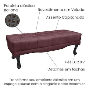 Dormir bem e manter-se seguro na hora de relaxar são fatores importantes que influenciam na qualidade do sono. Juntos, a Cabeceira Vicenza e o Puff Recamier Vicenza criam uma sinergia única, onde o requinte encontra a funcionalidade! Este modelo é indicado para Cama Box Solteiro de 195 cm. A Cabeceira Vicenza contém uma estrutura em madeira de eucalipto preenchida com espuma D23, possui costura em losangos bordada em matelassê, tachas em fumê e botões encapados que conferem uma textura maleável e um visual refinado, contém frame em metal e sapatas de plástico PVC que além de serem muito resistentes garantem maior flexibilidade e sustentação à peça. O Puff Recamier Vicenza é preenchido com espuma D26 e possui uma capacidade de suportar até 120 kg. Seus pés são feitos de madeira maciça no estilo Luís XV, proporcionando estabilidade e robustez à peça. Ele contém também detalhes refinados como as tachinhas em metal fumê na borda e no assento detalhes em capitonê, percinta elástica italiana sendo um suporte adicional que confere maior durabilidade. O tecido desse conjunto é feito em Veludo em tom Vinho que confere um acabamento suave e luxuoso, adicionando um toque de requinte ao design. Esta harmoniosa união de móveis não só acrescenta um toque de sofisticação ao seu espaço, mas também proporciona um ambiente acolhedor e convidativo, onde o luxo e o conforto se fundem em perfeita sintonia. Permita-se envolver neste oásis de elegância e bem-estar, onde cada detalhe celebra o estilo e o bom gosto.