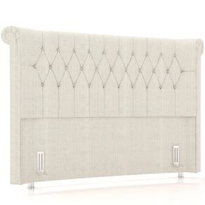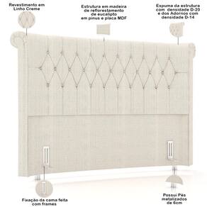 Fabricada com madeira de reflorestamento com tratamento contra a mofo e cupins, essa cabeceira estofada é a garantia de um quarto aconchegante e lindo. Afinal, possui um design levemente curvo, adornos com botões e laterais que lembram as colunas gregas jônicas, ou seja, mais que uma cabeceira, é uma peça decorativa que vai elevar o nível do seu ambiente. Além disso, conta com pés metalizados que evitam o contato direto com o chão, enquanto a tapeçaria com espuma densa oferece suporte extra ao relaxar na cama.