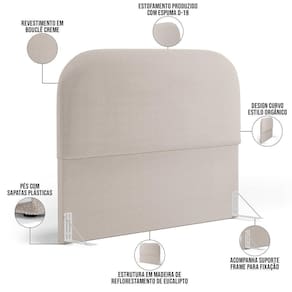 Color: Bege | Altura: 162 | Material: Estrutura em madeira de reflorestamento de eucalipto. | ColorSupplier: Creme | Largura: 280 | Model: Lanna | ProductWidth: 280 cm | ProductWarranty: 106 dias após o do produto | MaterialFamily: Madeira, Tecido, Espuma | ColorFamily: Bege | Profundidade: 60 | OriginCountry: | ProductWeight: 26 kg | Lado a Lado: 60 | SupplierSimpleName: Cabeceira Cama Box King 195cm Lanna com Puff Recamier Doha W01 Bouclê Creme - Lyam Decor | ColorSimple: Bege | ProductContents: 01 Cabeceira | OriginState: PR | DepthWidthSideToSide: 60 | ProductLength: 60 cm | Depth Front To Back: 60 | SizeDescription: Altura: 162 cm x Largura: 280 cm x Profundidade: 60 cm | ProductHeight: 162 cm | ProductInstructions: Produto para uso em ambiente interno, nao devendo ficar exposto ao sol, calor e umidade excessivos.