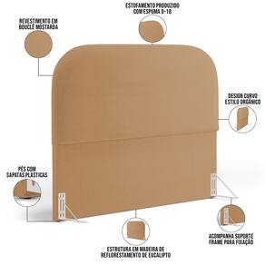 Características da Cabeceira: Estrutura em madeira de reflorestamento de eucalipto. Revestimento em Bouclê na cor Mostarda. Estofamento com espuma D-18 para maior conforto e maciez. Design curvo, estilo orgânico. Pés sapatas plásticas.