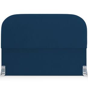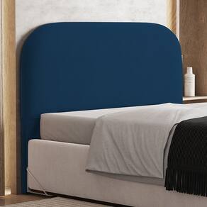 Características da Cabeceira: Estrutura em madeira de reflorestamento de eucalipto. Revestimento em Suede na cor Azul Marinho Estofamento com espuma D-18 para maior conforto e maciez. Design curvo, estilo orgânico. Pés sapatas plásticas.