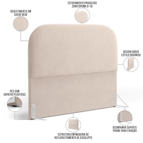Cabeceira Cama Box King 195cm Orgânica Lanna W01 Suede Bege - Lyam Decor