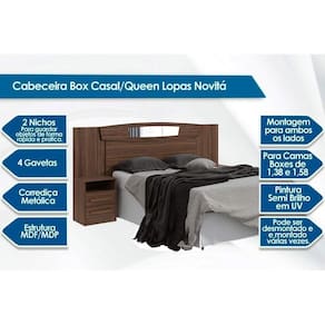 Imagens Meramente Ilustrativas. Não nos responsabilizamos pela montagem/instalação dos produtos. Todas as informações divulgadas são de responsabilidade exclusiva do fabricante/fornecedor. Tipo de Estrutura do Móvel: MDF/MDP | Quantidade de Gavetas: 4 Gavetas | Certificação de Qualidade de Móveis: Ecologicamente Correto | Garantia: 3 meses | Tipo de Pintura: UV | Quantidade de nichos: 2 nichos | Tamanho do colchão para usar na cabeceira: 138 | Diferenciais da Gaveta: c/ Corrediças Telescópicas | Tipo de Acabamento da Pintura: Semi Brilho | Tipo de Cama: Tradicional | Garantia de Fábrica: Garantia de Fábrica | Com cama auxiliar: Não | Com altura ajustável: Não | Cor Principal: Branco | É kit: Não | Com mesa de cabeceira: Sim | É adequado para cama box: Sim | Tipo de Montagem: Cama | Fonte do produto: N/A | Material do estofamento: Bombazina | Condição do item: Novo | Classificação da Cama: Casal | Modelo de Cama: Simples | Produto: N/A | Quantidade de gavetas: 0 | Quantidade de Portas: 0 | Código universal de produto (GTIN): 7899767938205 | Condição do Item: Novo | Link Site: https://www.costaricacolchoes.com.br/produtos.asp?produto=21353 | Numeral: 0 | Não se Aplica: N/A | Não Possui: Não | Link Youtube: https://www.youtube.com/watch?v=mr-u4xhYa98 | ID Youtube: mr-u4xhYa98 | Linha/Modelo: Lopas | Cor Cnova: Blush | Cor Meli: Marrom | Contatos Sac Fábrica: assistencia@grupolopas.com.br | Categoria Trilha: Cabeceira de Cama Box> Cabeceira Cama Box Madeirado | Categoria - Sub: Cabeceira Cama Box Madeirado | Categoria - Pai: Cabeceira de Cama Box | Comprimento Embalagem: 166.00 | Largura Embalagem: 67.00 | Altura Embalagem: 10.00 | Kit: 0 | Peso: 47.20 Kg | Peso Real Kg: 47.20 | Peso Cubado: 27.75 | Volumes: 1 | M3: 0.11 | Comprimento/Profundidade: 34 cm | Largura: 243 cm | Altura: 114 cm | Tamanho Montado: Larg:243.00 x Comp/Prof:34.50 x Alt: 114.40 | Comprimento/Profundidade Montado: 34.50 | Largura Montado: 243.00 | Altura Montado: 114.40 | Cor Fabricante: Amêndoa/Rovere | Data Cadastro: 2023-8-1 15:49:59 | Sigla Estoque: 2 | Marca: Lopas