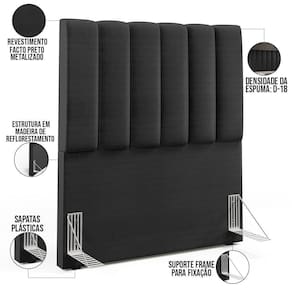 Cabeceira Cama Box Painel Solteiro 100 Cm Preto Metalizado