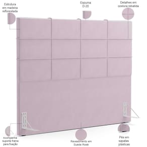 A deslumbrante Cabeceira Roma chegou para trazer a comodidade essencial para suas horas de descanso, além disso é um elemento de destaque para qualquer cama, proporcionando não apenas conforto mas também toques de elegância e requinte ao ambiente. Traz consigo um design meticuloso, feita com materiais de alta qualidade, confere um aspecto sofisticado e agradável ao toque, agregando uma textura suave ao ambiente. Vale ressaltar seus detalhes em costura rebatida que trazem o acabamento impecável, sendo assim uma peça de arte que eleva o charme do seu quarto. Seja lendo, assistindo TV ou simplesmente descansando, a superfície estofada lhe proporciona um conforto excepcional! Uma declaração de bom gosto que transforma o seu quarto em um retiro de elegância e serenidade. Garanta já a sua! Dimensões da Cabeceira (L x A x P) 160 x 120 x 8 cm Altura do chão à base: 55 cm Dimensões do Frame (L x A x P) 5,5 x 13,5 x 16,5 cm Características da Cabeceira: Estrutura em Madeira reflorestada. Revestimento em Suede na cor Rosê, com acabamento semi brilho. Estofada com Espuma D-20. Acompanha todos os acessórios para fixação. Pés em sapatas plásticas. Características do Frame: Produzido em chapa de ferro 1,5 mm. Acabamento em esmalte PU na cor Alumínio. Acessórios para fixação: 04 Parafusos cabeça chata auto atarraxantes 5,0x25mm e 04 arruelas 1/4. - Por se tratar de estofado as medidas podem ter uma pequena variação de até 3 cm. - A tonalidade do produto real poderá ter ligeira variação devido o lote de tecidos. - A limpeza deve ser feita com pano levemente umedecido em água limpa, sem esfregar, não utilizar produtos abrasivos, desengordurantes, álcool ou solvente. Observações importantes: - Produto para uso residencial em ambiente interno, não devendo ficar exposto diretamente ao sol, calor e umidade excessivos. - Pode haver alguma diferença de tonalidade entre a imagem e o produto real, por conta do tratamento de imagens e a calibração de cores do seu monitor. - As imagens são meramente ilustrativas, não acompanham objetos de decoração e eletrônicos. - Ao receber a mercadoria, o cliente deve verificar as condições da embalagem, caso haja alguma não assine o de . - Montagem, desmontagem e outras instalações serão de responsabilidade do cliente. Não nos responsabilizamos, no ato da , por subir escadas/elevadores ou pelo por guincho em apartamentos. Eventuais despesas são de responsabilidade do comprador. - Confira as dimensões do produto e certifique-se de que passará normalmente por supostos elevadores, portas, escadas e/ou corredores de sua residência. SizeDescription: Altura: 120 cm x Largura: 160 cm x Profundidade: 8 cm | OriginState: PR | ProductContents: 01 Cabeceira | Model: Roma | ProductWarranty: 90 dias após o do produto | ProductLength: 8 cm | ProductWidth: 195 cm | ProductHeight: 120 cm | OriginCountry: | ProductInstructions: Produto para uso em ambiente interno, nao devendo ficar exposto ao sol, calor e umidade excessivos. | ProductWeight: 9 kg | ColorSimple: Rosa | Color: Rosa | ColorFamily: Rosa | SupplierSimpleName: Cabeceira Cama Box Queen 160 cm Roma W01 Suede Rosê - Lyam | Material: Madeira | MaterialFamily: Madeira | ColorSupplier: Rosa