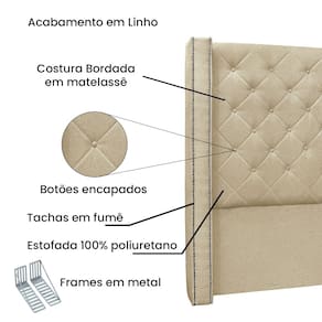 Dormir bem e manter-se seguro na hora de relaxar são fatores importantes que influenciam na qualidade do sono. Unir esses pontos com uma decoração incrível seria perfeito, não é mesmo? Que tal começar essa mudança pela cabeceira da sua cama!? A Cabeceira Vicenza sem dúvida vai roubar a cena de tão linda e aconchegante! Contém estrutura feita em madeira de eucalipto, uma opção que ressalta a durabilidade e beleza da peça. A cabeceira é preenchida com espuma D23, garantindo um conforto ideal para noites mais tranquilas. Este modelo é indicado para Cama Box Queen de 160 cm, possui costura em losangos bordada em matelassê, tachas em fumê e botões encapados que conferem uma textura maleável e um visual refinado. O revestimento foi feito no Linho, um tecido de alta qualidade no tom Dourado perfeita para criar uma atmosfera mais aconchegante ao local. As sapata são de plástico além de serem muito resistentes garantem maior flexibilidade e sustentação à peça. E não menos importante acompanha frame em metal que é o suporte ideal para fixar a cabeceira na cama box. O design desta peça apresenta um elemento estético sofisticado, que transformará instantaneamente o ambiente e impedirá que a passagem de temperaturas (frio/quente) que se concentram na parede, passem diretamente para o usuário. A Cabeceira Vicenza é a opção mais adequada para o seu dormitório, afinal de contas você merece o que há de melhor para completar a decoração da sua casa. Adquira a Cabeceira Vicenza antes que acabe o estoque!