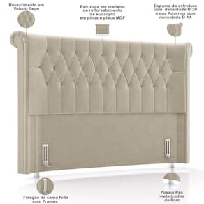 Fabricada com madeira de reflorestamento com tratamento contra a mofo e cupins, essa cabeceira estofada é a garantia de um quarto aconchegante e lindo. Afinal, possui um design levemente curvo, adornos com botões e laterais que lembram as colunas gregas jônicas, ou seja, mais que uma cabeceira, é uma peça decorativa que vai elevar o nível do seu ambiente. Além disso, conta com pés metalizados que evitam o direto com o chão, enquanto a tapeçaria com espuma densa oferece suporte extra ao relaxar na cama.