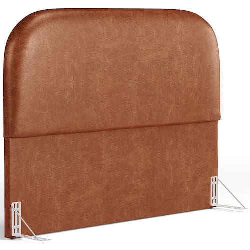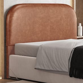 Características da Cabeceira: Estrutura em madeira de reflorestamento de eucalipto. Revestimento em Couríssimo na cor Camel. Estofamento com espuma D-18 para maior conforto e maciez. Design curvo, estilo orgânico. Pés sapatas plásticas.