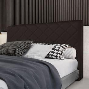 Cabeceira Cama Box Queen 1,60m Estofada Capri Linho Marrom Escuro