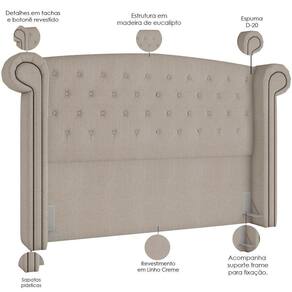 A Cabeceira Cama Box Casal Queen 160 cm P05 Sofia Linho Creme - Lyam Decor é uma peça singular e elegante. Com design moderno, ela traz destaque e beleza na hora de compor seu quarto. Seus detalhes em tachas, denotam todo o cuidado e carinho na hora da produção. Uma cabeceira que trás presença, beleza e idade aos apreciadores do minimalismo, agregando valor aos pequenos detalhes. Com materiais de excelente qualidade e acabamento impecável, o revestimento em Linho combina majestosamente com o restante da mobília. Podendo ser disposta com mesas de cabeceira e apoio, calçadeira ou recamier. É a composição perfeita para os amantes da elegância! Você merece o melhor, garanta já a sua!!