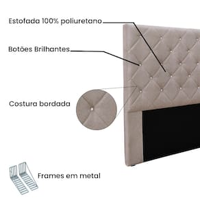 A Cabeceira Dora é um charme na decoração, com um design belíssimo e encantador. É fabricada com materiais de ótima qualidade que oferecem muita durabilidade ao produto, e também é revestida com tecido de alta qualidade o que proporciona muito conforto e excelente acabamento. Ela contém detalhes com costura bordada e botões brilhantes que dão um toque especial à peça, e acompanha frames de fácil instalação na Cama Box. A cabeceira estofada protege contra friagem na parede, protege também contra manchas, riscos e arranhões na parede proporcionando maior conforto, pode também ser utilizada como encosto para ler um livro, ou assistir TV! São várias funções, adquira já!