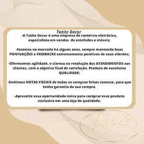 - Para futuras compras, não garantimos a mesma tonalidade de cor, pois existe variação a cada lote do fabricante do tecido.
