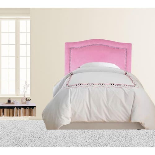 Cabeceira Cama Box Solteiro Línea Tachas em Veludo Rosê Cabeceira Solteiro Estofada Línea Tachas em Veludo Rosê