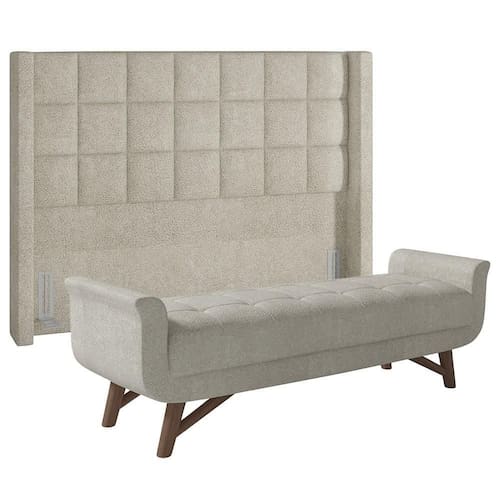Se você está procurando um conjunto para o Quarto De Casal que combine elegância, conforto e qualidade, você vai adorar a Cabeceira Cama Casal 140cm Pisa e Recamier Neville P02 Bouclé Cru, da Mpozenato.