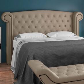 Essa cabeceira casal estofada é um luxo só, isso porque o seu design curvo somado aos botões revestidos cria um ambiente clássico e charmoso, como toda cabeceira provençal. Já as abas laterais com aplicação de tachinhas são um charme a parte, pois o desenho delineado remete às colunas jônicas gregas, ou seja, muito mais que um móvel estofado, você terá em casa um ícone de decoração inspirado na mais bela arquitetura.