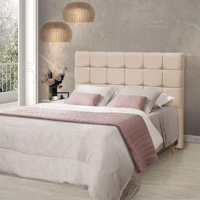 AS IMAGENS SÃO MERAMENTE ILUSTRATIVAS E PODEM SOFRER VARIAÇÕES DE COR E PEQUENOS DETALHES DE ACORDO COM O SEU MONITOR, ILUMINAÇÃO DO AMBIENTE E ATÉ MESMO A SUA PERCEPÇÃO VISUAL.Cabeceira Cama Casal Estofada 1,40 - Maia Linho Cru