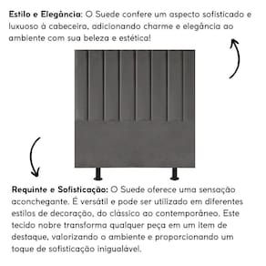 Fabricada com materiais de alta qualidade, como madeira eucalipto e revestimento em Suede, esta cabeceira é durável e resistente, garantindo não apenas estilo, mas também funcionalidade para o seu ambiente.