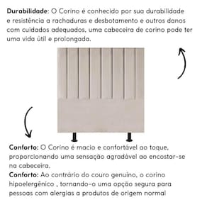Fabricada com materiais de alta qualidade, como madeira eucalipto e revestimento em corino, esta cabeceira é durável e resistente, garantindo não apenas estilo, mas também funcionalidade para o seu ambiente.