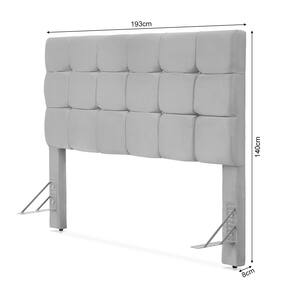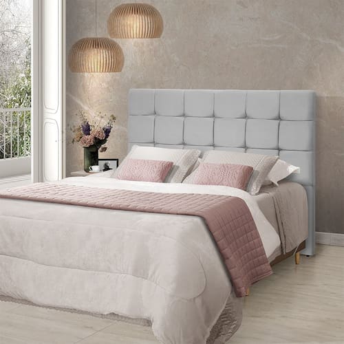 Tipo: Cabeceira Modelo: Maia Cor: Cinza Claro Tecido: Veludo Estofado com tecido, toque suave e elegante Detalhe em capitonê (técnica de estofamento) quadriculado que valoriza o ambiente Estrutura resistente com pés e suportes metálicos de fixação Fabricada com madeira de reflorestamento (eucalipto/MDF) Instalação simples e prática - basta encaixar e fixar