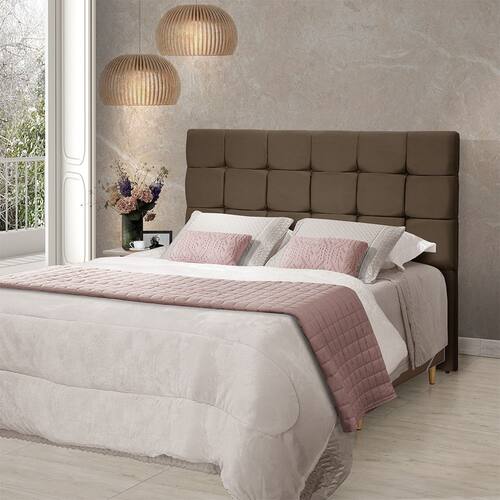 Tipo: Cabeceira Modelo: Maia Cor: Marrom Tecido: Veludo Estofado com tecido, toque suave e elegante Detalhe em capitonê (técnica de estofamento) quadriculado que valoriza o ambiente Estrutura resistente com pés e suportes metálicos de fixação Fabricada com madeira de reflorestamento (eucalipto/MDF) Instalação simples e prática - basta encaixar e fixar
