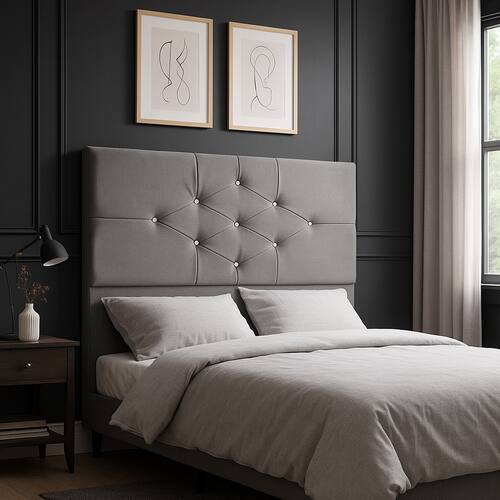 Cabeceira Estofada em Suede com Detalhes em Botonê de Cristal – Design Elegante e Sofisticado