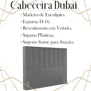 Cabeceira Casal 138 cm Dubai Veludo, ideal para inovar o seu quarto com toque luxuoso e ao mesmo tempo refinado. Estrutura em madeira de eucalipto, que oferece maior durabilidade ao produto. Composta por revestimento em tecido veludo, conta com espuma D-16 de altíssima qualidade, sapatas plásticas e acompanha frames para facilitar a fixação no box, é ideal para colchão Casal de 138 cm. Unindo elementos do design contemporâneo, que proporcionam uma ambientação moderna e com acabamentos sofisticados. Este móvel chegará na sua casa separado em 01 volume.