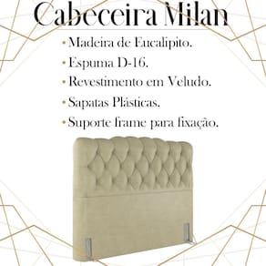 Cabeceira Casal 138 cm Milan Veludo, é a escolha certa para você que busca conforto e modernidade, tornando o seu quarto muito mais versátil e sofisticado. Estrutura em madeira de eucalipto, que oferece maior durabilidade ao produto. Composta por revestimento em tecido veludo, conta com espuma D-16 de altíssima qualidade, sapatas plásticas e acompanha frames para facilitar a fixação no box, é ideal para colchão Casal de 138 cm. Com design que proporciona elegância, charme e luxuosidade ao seu quarto. Este móvel chegará na sua casa separado em 01 volume.