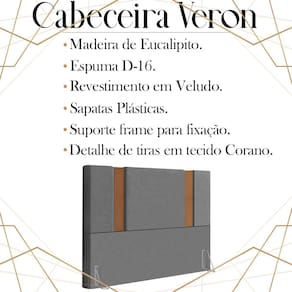 Cabeceira Casal 138 cm Veron Veludo, é a escolha certa para você que busca conforto e modernidade, tornando o seu quarto muito mais versátil e sofisticado. Estrutura em madeira de eucalipto, que oferece maior durabilidade ao produto. Composta por revestimento em tecido veludo com detalhe de tiras em tecido corano, conta com espuma D-16 de altíssima qualidade, sapatas plásticas e acompanha frames para facilitar a fixação no box, é ideal para colchão Casal de 138 cm. Com design que proporciona elegância, charme e luxuosidade ao seu quarto. Este móvel chegará na sua casa separado em 01 volume.