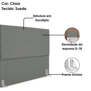 Cabeceira Casal Luna, moderna e aconchegante trazendo elegância para seu quarto! Estrutura em Madeira de Eucalipto (reflorestada), estofada em espuma (densidade D-18) e revestida em tecido Suede (clássico aveludado com toque suave). Incluso Frame (metal resistente com reforço lateral e acabamento em pintura epóxi) para fixação em camas Box e sapatas plásticas. Este produto será entregue em 1 volume.