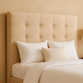 Moderna e aconchegante a Cabeceira Casal Luiza traz estilo e conforto para seu quarto! Estrutura em madeira reflorestada (ecologicamente correta), com estofamento em espuma D-14 e revestida em tecido Veludo (aveludado e macio) com detalhe na costura estilo capitonê, com linhas retas e botões encapados, proporcionando relevo suave, além de sapatas plásticas. BOX/ COLCHÃO E DEMAIS DECORAÇÕES NÃO INCLUSOS. Este produto será entregue em 1 volume.