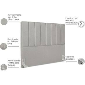 Transforme o seu quarto com a Cabeceira Casal Allia. Projetada para oferecer um toque moderno, possui revestimento em Linho que traz classe e conforto ao ambiente. Com 140cm de largura, esta cabeceira é feita com uma estrutura em madeira de eucalipto, garantindo durabilidade e resistência. Sua espuma de densidade D-18 oferece um suporte ideal e maciez. As sapatas plásticas garantem estabilidade e proteção para o seu piso, evitando riscos e danos. Além disso, o produto vem acompanhado de frame de metal, facilitando a instalação e proporcionando maior segurança. Ideal para quem busca funcionalidade e estilo. Este móvel chegará em sua casa separado em 01 volume.