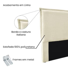 Cabeceira Casal 140cm Linho Rústico Veneza Spezzia Decor Pérola - Branco