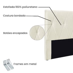 Apresentamos o modelo de cabeceira Aquilla que veio para completar o seu quarto. Visual moderno e sofisticado com o tamanho perfeito para você, produzida com materiais de ótima qualidade, botões forrados no tecido com costuras bordadas fazem dela uma obra de arte no seu quarto.