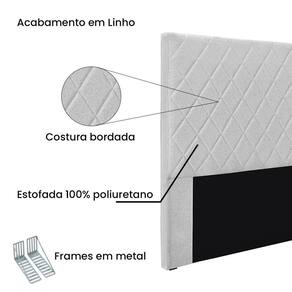 Cabeceira Casal 1,40m Com Costura Bordada Em Tecido Linho Diamante – Lucadi Rústico Grígio - Branco