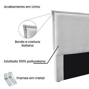 Cabeceira Casal 1,40m Estofada Com Borda Italiana Em Tecido Linho Luna – Lucadi Rústico Grígio - Branco