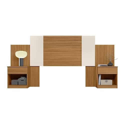Cabeceira Casal Araguaia Extensível Ripada Color Freijó/off White - Moval Freijó/off White Cabeceira Casal Araguaia Extensível Ripada - Moval Transforme seu quarto com a Cabeceira Casal Araguaia Extensível Ripada. Com estrutura em MDP e pintura UV, ela oferece durabilidade e um acabamento impecável. Suas 2 gavetas com corrediças telescópicas proporcionam armazenamento prático e funcional. O painel central com acabamento ripado e nichos traz um design moderno e sofisticado. Além disso, a cabeceira extensível se adapta perfeitamente a colchões de 138 e 158 cm de largura, oferecendo versatilidade e elegância para o seu ambiente. Escolha a Cabeceira Casal Araguaia e dê um toque especial ao seu espaço. ESPECIFICAÇÕES: - Estrutura em MDP - Pintura UV - 2 Gavetas - Corrediças telescópicas - Painel central com acabamento ripado - Nichos - Cabeceira extensiva com abertura para colchões de 138 e 158 cm de largura - Não acompanha colchão