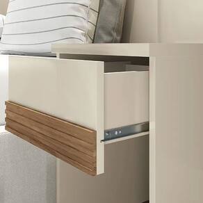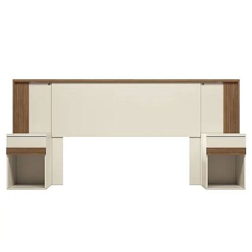 Qualidade e funcionalidade Desenvolvida com MDP para garantir durabilidade e resistencia, esta cabeceira foi especialmente criada para camas de casal. As duas gavetas vem equipadas com corredicas telescopicas de otima qualidade, permitindo um deslize suave e seguro. Alem disso, ela incorpora uma tecnologia de luz LED com interruptores individuais, um de cada lado, oferecendo uma iluminacao aconchegante e personalizada para o seu ambiente. Os detalhes em madeira ripada e o acabamento fosco no madeirado adicionam um toque de elegancia, unindo praticidade e sofisticacao. Ideal para casais que buscam conforto, funcionalidade e um visual moderno, a Cabeceira para Casal Bourbon transforma o ambiente do seu quarto.