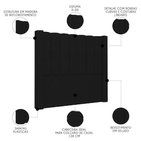 Elemento fundamental para compor a decoração do quarto de casal e, ainda, desempenhar funcionalidade que vai além do estético, a Cabeceira Casal Cama 140cm Claire I02 Veludo Preto, da Mpozenato, vai te surpreender do começo ao fim.